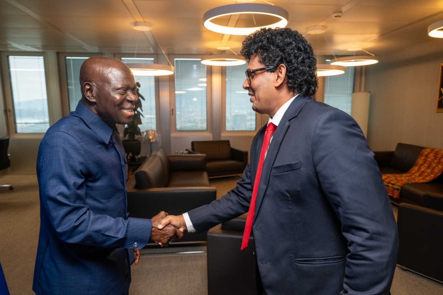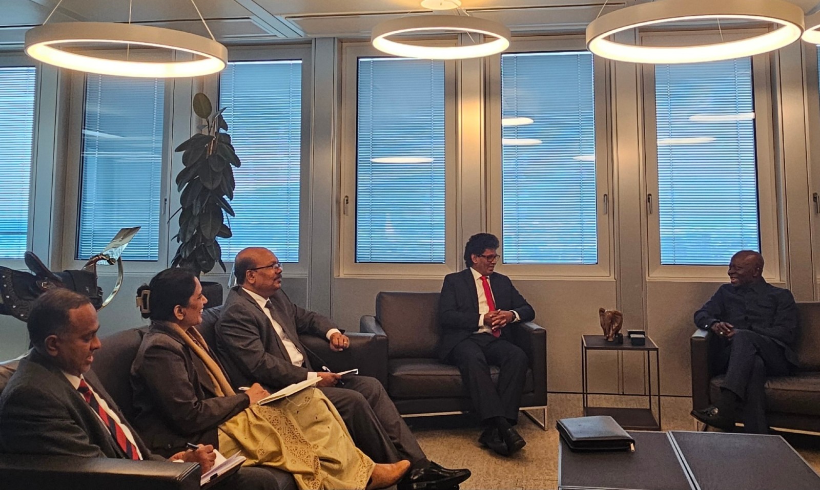 Hon. Wasantha Samarasinghe, Minister of Trade, Commerce, Food Security and Co-operative Development paid a courtesy call on Mr. Gilbert F. Houngbo, Director General of the International Labour Organization on 16 October 2025 at the ILO Office, on the margins of the Fifth Review of the Trade Policies and Practices of Sri Lanka, which is being held from 15-17 October 2025 in Geneva, Switzerland.